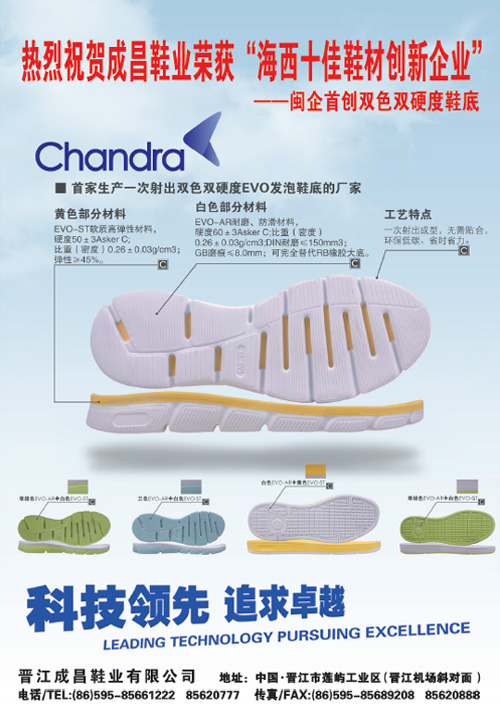 目前,此前还只有国际一线品牌在使用双密度EVO鞋底,如今,国内部分一二线品牌也开始大量尝试,并初步获得市场认可。EVO的研发成功,无论是从鞋材企业本身的产品生产周期,还是生产工序的简化、生产人力的节省及舒适度等方面,都大大为成品鞋企提供更加优质、快速的产品和周期。成昌的首席产品EVO超轻耐磨鞋底,无疑很好地抢占了这块市场的有力竞争位置,在业内具备了科技领先地位。